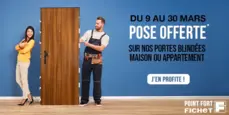 Du 9 mars au 31 mars 2026, Point Fort Fichet propose une offre spéciale sur les portes blindées pour maison ou appartement : la pose est offerte.